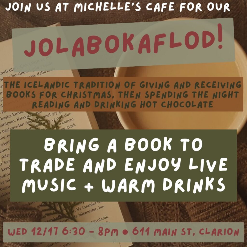 We are stoked be hosting our second Jolabokaflod celebration at Michelle’s Cafe this year!